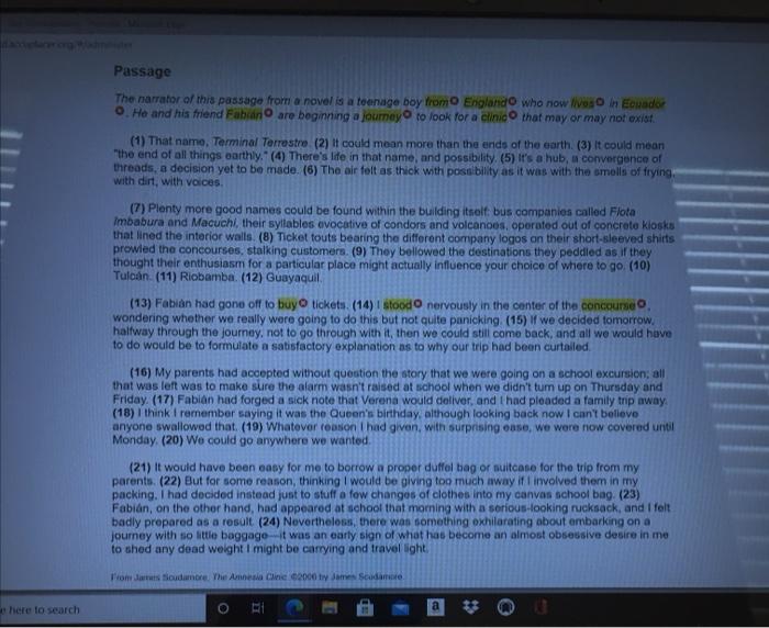 Passage The Narrator Of This Passage From A Novel Is Chegg Com
